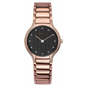 Zegarek damski Obaku model V276LEVBSV łączy w sobie elegancję i nowoczesny design, będąc doskonałym odzwierciedleniem modnego stylu "Fashion". Okrągła koperta o średnicy 30mm, wykonana z wysokiej jakości stali szlachetnej pokrytej technologią PVD/IP w kolorze różowego złota, dodaje luksusowego charakteru. Tarcza w głębokim, ciemnym odcieniu, zdobiona cyrkoniami, harmonijnie komponuje się z czarną, metalową bransoletą, tworząc spójną całość. Szkło mineralne gwarantuje odporność na zarysowania, co podkreśla trwałość i funkcjonalność zegarka. Wodoodporność do 30 metrów zapewnia ochronę przed przypadkowymi zachlapaniami, co czyni go idealnym dodatkiem na co dzień oraz na specjalne okazje.