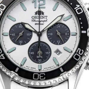 Zegarek męski Orient, model RA-TX0203S10B, stanowi doskonałe połączenie style sportowo-eleganckiego z techniczną perfekcją, które jest charakterystyczne dla marki Orient. Wytworny design tego modelu wyróżnia się swoją okrągłą kopertą o średnicy 43mm, wykonaną ze stali szlachetnej, co zapewnia trwałość i odporność na zarysowania, dzięki zastosowaniu szkła szafirowego. Jasna tarcza w połączeniu z fluorescencyjnymi wskazówkami i indeksami zapewnia świetną czytelność w różnych warunkach oświetleniowych. Sportowa elegancja tego zegarka jest dopełniona przez wszechstronną funkcjonalność, w tym chronograf, datownik oraz panel słoneczny, a wodoodporność do 200m sprawia, że zegarek nadaje się nawet do nurkowania z aqualungiem.