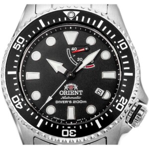 RA-EL0001B00B Orient dzięki czarnej tarczy jest bardzo czytelny. Wskazówki są w kolorze białym, kontrastują na tarczy i umożliwiają łatwy odczyt godziny.W górnej części tarczy umieszczono logo marki. W modelu tym zastosowano szkiełko mineralne, wykonane na bazie krzemu, które bardzo dobrze sprawdza się nawet w codziennym użytkowaniu. Chronometr RA-EL0001B00B posiada odporność na wodę na poziomie 20 ATM, co oznacza, że zegarek pozwala na nurkowanie z aqualungiem.