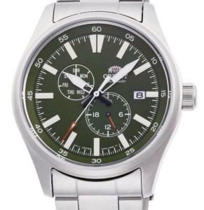 Orient Sports RA-AK0402E10B - przedstawiamy męski zegarek marki Orient o sportowym charakterze. Jego design jednak nie opiera się całkowicie na sporcie, ponieważ klasyczna, stalowa bransoleta oraz ciemna tarcza idealnie wpasują się także w stylizacje bardziej eleganckie. Urządzenie to jest połączeniem wielu zalet, które z pewnością CI się spodobają, a także pozwolą CI na jak największy komfort używania zegarka na co dzień.Odmierzaniem czasu w tym modelu Orient Sports RA-AK0402E10B zajmuje się japoński mechanizm automatyczny Orient F6B22, 22-kamienny, z rezerwą chodu na 40 godzin. Jego zieloną tarczę pokrywa szkiełko mineralne, którego zadaniem jest ochrona powierzchni tarczy przed zarysowaniami. Kopertę oraz bransoletę odlano dzięki stali szlachetnej nierdzewnej. Bezpieczne pływanie powierzchniowe oraz nurkowanie na nieznacznych głębokościach wraz z czasomierzem na ręku umożliwia wodoszczelność klasy 100 metrów. Na cyferblacie modelu znajduje się funkcja datownika dni miesiąca oraz sub-tarcza czasu dobowego.