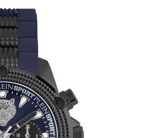 Zegarek męski Plein Sport model PSDBA0123 to wyraz nowoczesnego stylu sportowego, który łączy w sobie funkcjonalność i estetykę. Elegancki czarny kolor z niebieskimi akcentami oraz zastosowanie nanoszenia koloru metodą PVD/IP nadaje wyjątkową trwałość i głębię odcieni. Okrągła koperta o średnicy 44 mm, wykonana ze stali szlachetnej, chroniona jest przez mineralne szkło, które zapewnia odporność na zarysowania. Sportowy charakter podkreślają funkcje takie jak chronograf ze stoperem oraz datownik, a wodoodporność do 50 metrów sprawia, że zegarek świetnie sprawdzi się podczas aktywności na świeżym powietrzu. Gumowy pasek zapewnia komfort noszenia nawet podczas intensywnego wysiłku.
