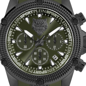Zegarek męski Plein Sport model PSDBA0223 to manifestacja dynamicznego stylu i wysokiej jakości, charakterystycznej dla marki Plein Sport. Wykonany ze stali szlachetnej, ten okrągły czasomierz o średnicy 44 mm, pokryty techniką nanoszenia koloru PVD/IP, prezentuje się w mrocznych tonacjach czerni i zieleni, co podkreśla jego sportowy charakter. Czarna, gumowa bransoleta jest odporna na zużycie i zapewnia komfort noszenia podczas aktywności fizycznych. Ciemna tarcza wzbogacona jest o fluorescencyjne wskazówki i indeksy, co zwiększa czytelność w każdych warunkach. Dodatkowe funkcje jak chronograf, stoper oraz datownik nadają temu modelowi funkcjonalność pożądaną przez aktywnych mężczyzn, niezależnie od warunków.
