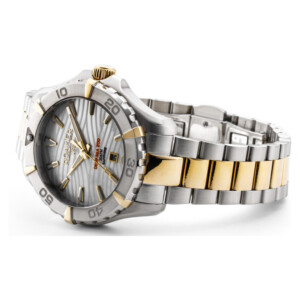 Zegarek Roamer model 860844 47 20 20 zachwyca eleganckim wyglądem, który łączy w sobie klasyczną biel tarczy z solidnością srebrnej, stalowej koperty. Ponadczasowa biała tarcza harmonijnie komponuje się z okrągłą, srebrną obudową, dodając subtelnego luksusu, który podkreśla prestiż marki Roamer. Średnica koperty wynosząca 34mm oraz jej grubość 9mm tworzą idealnie wyważoną całość, która idealnie prezentuje się na nadgarstku. Szkło szafirowe, odporne na zarysowania, zapewnia nie tylko funkcjonalność, ale i bezpieczeństwo w codziennym użytkowaniu. Elegancka bransoleta oraz detal w postaci datownika ze zakręcanym deklem to rozwiązania, które podnoszą zarówno estetykę, jak i praktyczność tego zegarka.