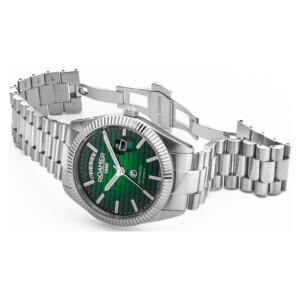 Zegarek Roamer o modelu 981666 41 75 50 urzeka elegancją i solidnością wykonania. Jego zielona tarcza tworzy wyrafinowany kontrast z srebrnym, stalowym paskiem i kopertą, nadając czasomierzowi zarówno nowoczesny, jak i klasyczny charakter. Okrągła koperta o średnicy 42mm idealnie komponuje się z każdą stylizacją, a szafirowe szkło odporne na zarysowania sprawia, że zegarek będzie służył latami w nienagannej kondycji. Bransoleta ze stali szlachetnej dodaje luksusu, a datownik umieszczony na tarczy ułatwia codzienne życie użytkownika. Zegarek jest wodoodporny do 50m, co pozwala na beztroskie korzystanie z niego podczas pływania powierzchniowego. Roamer, jako marka z długą tradycją, ponownie potwierdza swoje umiejętności kreowania zegarków o wyjątkowej estetyce i funkcjonalności.