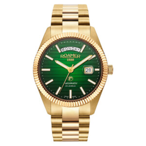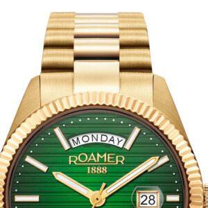 Zegarek męski Roamer model 981666 48 75 50 to kwintesencja luksusu i nowoczesnego stylu, łącząca elegancję z fashionowym wykończeniem. Okrągła, 42mm koperta, wykonana z wysokiej jakości stali szlachetnej w odcieniach zielonego i żółtego złota, podkreśla ekskluzywny charakter zegarka. Ciemna tarcza harmonijnie koresponduje ze szlachetnymi barwami bransolety, natomiast odporne na zarysowania szkło szafirowe gwarantuje trwałość i czytelność. Marka Roamer, znana ze swojego zaangażowania w doskonałość, potwierdza wiarygodność tego modelu, oferując 7-letnią gwarancję. Zegarek idealnie dopełni każdą, nawet najbardziej wyrafinowaną stylizację, będąc nie tylko urządzeniem do mierzenia czasu, ale również wyrazem prestiżu.