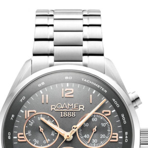 Zegarek męski Roamer o modelu 993819 41 54 20 łączy w sobie elegancję oraz sportowy styl, co czyni go idealnym wyborem dla nowoczesnego mężczyzny, ceniącego zarówno funkcjonalność, jak i estetykę. Wykonana ze stali szlachetnej okrągła koperta o średnicy 42 mm oraz bransoleta są nie tylko trwałe, ale również elegancko prezentują się na nadgarstku. Szara tarcza z arabskimi cyframi jest czytelna i harmonijnie komponuje się z srebrnym kolorem koperty i paska, podkreślając sportowy charakter zegarka. Model ten cieszy oko detalami takimi jak tachymetr i chronograf, a niezawodność zapewnia kwarcowy mechanizm Ronda. Dodatkowo szafirowe szkło gwarantuje odporność na zarysowania, a luminova na wskazówkach i indeksach umożliwia łatwe odczytywanie godziny nawet w ciemności. Zegarek jest odzwierciedleniem prestiżu marki Roamer, znanej z wysokiej jakości wykonania i ponadczasowego designu, idealnie wpisując się w potrzeby aktywnych mężczyzn.
