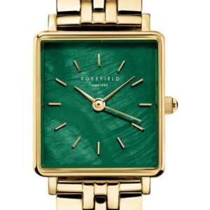 Zegarek damski Rosefield model BEGSG-Q050 to kwintesencja współczesnego stylu fashion, perfekcyjnie łącząca elegancję z nowoczesnością. Wyjątkowy kształt prostokątnej, pozłacanej koperty w odcieniach żółtego złota z zieloną tarczą nadaje temu zegarkowi niepowtarzalny charakter. Wykonana z mosiądzu bransoleta gwarantuje trwałość, podczas gdy mineralne szkło chroni przed zarysowaniami i uszkodzeniami. Kompozycja kolorystyczna oraz wyrafinowane detale, takie jak nanoszenie koloru metodą PVD/IP, świadczą o unikalności i prestiżu marki Rosefield, która wyróżnia się na rynku swoim nowoczesnym podejściem do designu i jakości.