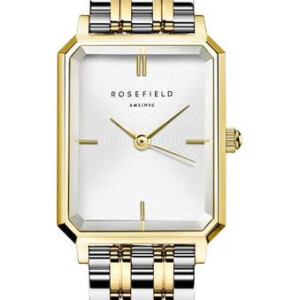 Zegarek damski Rosefield model OWDSG-O62 to kwintesencja elegancji i współczesnego designu, idealny dla kobiety ceniącej wyrafinowany styl i jakość. Dwukolorowe wykończenie łączące srebro i żółte złoto, podkreślone przez technikę nanoszenia koloru PVD/IP, dodaje ekskluzywnego charakteru. Prostokątna koperta z mosiądzu o szerokości 20mm, ozdobiona pozłacaniem w kolorze żółtego złota oraz mineralne szkło chroniące jasną tarczę zwiększają jego wytrzymałość i wygodę użytkowania. Delikatna bransoleta dopasowuje się do każdej okazji, tworząc idealne połączenie funkcjonalności i modowego wyglądu, zgodnie z najnowszymi trendami w "Fashion".