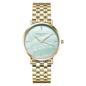 Elegancki i wyrafinowany zegarek damski Rosefield model UGGSG-U37 to kwintesencja kobiecej mody i luksusu. Oparty na klasycznej, okrągłej kopercie wykonanej z mosiądzu i pokrytej technologią PVD/IP w kolorze żółtego złota, oferuje nie tylko piękny wygląd, ale również trwałość. Jasna tarcza z masą perłową dodaje uroku, a zielony kolor bransolety wprowadza świeżość i nowoczesność do projektu. Styl Fashion, do którego nawiązuje ten model, idzie w parze z każdą modną stylizacją, potwierdzając wartość i nowoczesność marki Rosefield. Szkło mineralne zwiększa odporność na zarysowania, a klasa wodoszczelności do 30m zapewnia ochronę przed codziennymi zachlapaniami, sprawiając, że zegarek jest idealny na każdą okazję.