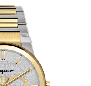 Zegarek męski Salvatore Ferragamo, model SFHP00520, zdobywa uznanie dzięki swojej eleganckiej konstrukcji oraz sportowym akcentom, które spełniają oczekiwania współczesnych mężczyzn ceniących zarówno funkcjonalność, jak i styl. Wyróżnia się bicolorem łączącym srebrne oraz żółte złoto, co nadaje mu prestiżowego looku. Wykonany z trwałego mosiądzu z pozłacanymi elementami metodą PVD/IP zapewnia trwałość i wyjątkowy blask. Bransoleta z mosiądzu harmonijnie łączy się ze szlachetnością szafirowego szkła, które jest odporne na zarysowania, zwiększając jego trwałość w codziennym użytkowaniu. Styl "sportowo-elegancki" czyni go idealnym wyborem zarówno do eleganckiego garnituru, jak i luźniejszego stroju weekendowego.