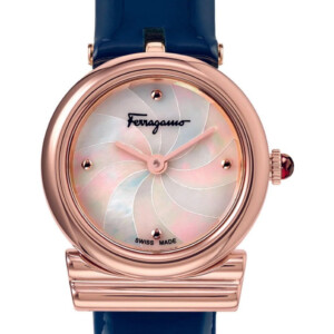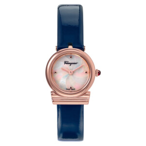 Zegarek damski Salvatore Ferragamo o numerze modelu SFYE00622 to kwintesencja elegancji i luksusu, które idealnie odzwierciedlają wartości marki. Prezentuje się wyjątkowo dzięki połączeniu niebieskiego tła tarczy z ciepłym blaskiem różowego złota, które dodatkowo uwydatnia proces nanoszenia koloru PVD/IP. Okrągła, pozłacana koperta o średnicy 22mm wykonana z wysokiej jakości stali szlachetnej zapewnia wytrzymałość, podczas gdy szafirowe szkło chroni przed zarysowaniami, podkreślając trwałość i praktyczne walory zegarka. Komfort noszenia gwarantuje elegancki, skórzany pasek, który dodatkowo podkreśla damski charakter akcesorium. Wodoodporność na poziomie 30 metrów chroni przed przypadkowymi zachlapaniami, czyniąc ten model idealnym towarzyszem zarówno podczas eleganckich wieczorów, jak i codziennego użytkowania.