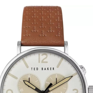 Zegarek męski Ted Baker model BKPBAS202, popularnej brytyjskiej marki znanej z doskonałej jakości i elegancji, stanowi doskonały wybór dla każdego mężczyzny ceniącego sobie modny i funkcjonalny akcesorium. Gustowne połączenie beżowych, białych, brązowych i srebrnych odcieni, z harmonijnym designem paska wykonanego z wysokiej jakości skóry oraz okrągłą, mosiężną kopertą o średnicy 41mm, podkreśla stylowy charakter zegarka. Jasna tarcza, dopełniona funkcjami chronografu, datownika i fluorescencyjnych wskazówek, zapewnia czytelność oraz praktyczność, czyniąc z tego modelu nie tylko przedmiot pożądania, ale i codziennego użytku. Zegarek wyposażono w szkło mineralne, które jest odporne na zarysowania, a jego wodoodporność do 50 metrów pozwala na bezproblemowe pływanie powierzchniowe.