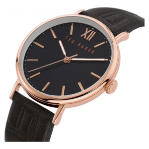 Zegarek damski Ted Baker model BKPPHF916 to kwintesencja nowoczesnej elegancji, którą reprezentuje marka. Pozłacane w kolorze różowego złota detale harmonijnie kontrastują z czarnym, skórzanym paskiem i ciemną tarczą, nadając zegarkowi wyrafinowanego, a zarazem odważnego charakteru. Okrągła koperta o średnicy 37 mm wykonana ze stali szlachetnej podkreśla trwałość i jakość, które są synonimami marki Ted Baker. Szkło mineralne chroni zegarek przed zarysowaniami, zachowując jego estetyczny wygląd na dłużej. Wodoodporność do 50 metrów pozwala na bezstresowe korzystanie z zegarka podczas pływania powierzchniowego. Fashion style zegarka jest perfekcyjnym dodatkiem do każdej stylizacji, od casualowej po wieczorową.