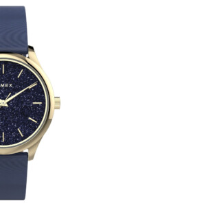 Zegarek damski Timex, model TW2V01200, to kwintesencja elegancji i wyrafinowanego stylu, symbolizująca wartości marki uznanej za synonim trwałości i precyzji. Wykonany ze stali szlachetnej z pozłacanymi elementami w kolorze żółtego złota, model ten przyciąga wzrok swoją okrągłą kopertą o średnicy 32mm i ciemną tarczą, która doskonale komponuje się z kontrastującym niebieskim paskiem gumowym. Mineralne szkło chroni zegarek przed zarysowaniami, podkreślając jego luksusowy charakter. Zegarek, dzięki wodoodporności do 50 metrów, jest także praktycznym wyborem dla kobiet ceniących aktywny styl życia.