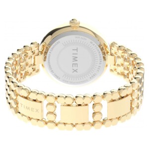 Zegarek damski Timex model TW2V02500 to kwintesencja elegancji w klasie Fashion. Wykonany ze stali szlachetnej z pozłacaniem w odcieniu żółtego złota, podkreśla prestiż marki Timex, znaną z wytrzymałości i jakości swoich produktów. Okrągła koperta o średnicy 34mm, ozdobiona kryształami, nadaje temu akcesorium luksusowy charakter. Jasna tarcza i mineralne szkło zapewniają czytelność i trwałość, a elegancka bransoleta dodaje całości ponadczasowej elegancji. Zegarek jest również wyposażony w niezawodny mechanizm kwarcowy oraz wodoodporność do 50 metrów, co uwydatnia jego funkcjonalność przy zachowaniu wysokiej estetyki.