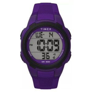Zegarek damski Timex model TW5M58600 to kwintesencja połączenia stylu Fashion z trwałością i nowoczesnością, których symbolem jest marka Timex. Wykonany z wytrzymałego tworzywa sztucznego, z okrągłą kopertą o średnicy 40mm oraz z paskiem gumowym, ten zegarek jest zarówno wygodny, jak i trwały. Fioletowy kolor dodaje elegancji, podkreślając indywidualny styl użytkowniczki. Jasna tarcza w połączeniu z hesalitowym szkłem, które dobrze chroni przed zarysowaniami, zapewnia łatwość odczytu. Dodatkowo, modny design oraz wodoodporność do 50m sprawiają, że jest to doskonały wybór dla aktywnych kobiet ceniących sobie zarówno funkcjonalność, jak i modny wygląd.