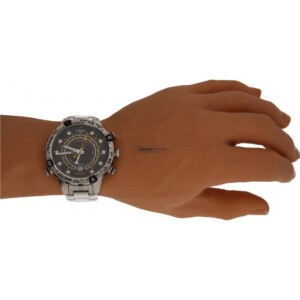 Wyposażony w kompas zegarek Timex Expedition T2N738, to doskonały model na wyprawy i ekspedycje. Jego masywna koperta i bransoleta zostały wykonane ze stali szlachetnej antyalergicznej. Czarny cyferblat urozmaicają elementy w kolorze żółtym.