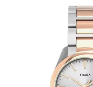 Elegancki i modny zegarek damski Timex model TW2V26500 to kwintesencja kunsztu i wyrafinowanego stylu. Jego bransoleta wykonana ze stali szlachetnej w połączeniu z pozłacanymi elementami w kolorze różowego złota oraz srebrem tworzy doskonałą harmonię barw, podkreślając tym samym wysoce estetyczny wygląd. Okrągła, lśniąca koperta o średnicy 32mm idealnie komponuje się z jasną tarczą, oferując czytelność i elegancję. Zegarek jest wyposażony w szkło mineralne, które gwarantuje trwałość i odporność na zarysowania, zwiększając tym samym żywotność zegarka. Marka Timex znana jest ze swojej niezawodności i jakości, co czyni ten model wyjątkowym dodatkiem do każdej stylizacji.