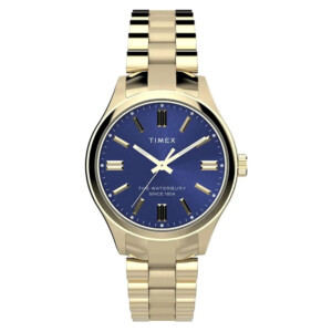 Damski zegarek Timex, model TW2W40300, to kwintesencja elegancji i nowoczesności w jednym. Wykonany z mosiądzu, z ozdobną, pozłacaną bransoletą w kolorze żółtego złota, idealnie współgra z subtelnymi elementami w kolorze niebieskim, dodającymi uroku każdej stylizacji. Okrągła, ciemna tarcza podkreślona jest przez trwałe szkło mineralne, które zapewnia odporność na zarysowania. Dopełnieniem całości jest funkcjonalność – zegarek jest wodoodporny do 50m, co czyni go praktycznym dodatkiem zarówno na co dzień, jak i podczas luźnych aktywności wodnych. Zegarek Timex z linii Fashion zaakcentuje każdą, nawet najbardziej wymagającą, damską garderobę, nadając jej wyrafinowanego charakteru.