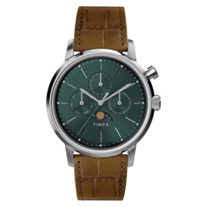 Zegarek męski Timex o numerze modelu TW2W51000 to kwintesencja stylu Fashion, łącząca elegancję z funkcjonalnością. Ze swoją okrągłą kopertą wykonaną ze stali szlachetnej, brązowym paskiem skórzanym i ciemną tarczą na tle, ta konstrukcja przyciąga spojrzenia subtelnością i jakością. Zastosowanie zielonych akcentów dodaje zegarkowi wyjątkowości, miejskiej świeżości, i oscyluje w trendach współczesnej mody. Szkło hesalitowe chroni przed zarysowaniami, zachowując przez długi czas idealny wygląd zegarka. Timex, jako marka ceniona za trwałość i niezawodność, potwierdza swoją jakość dwuletnią gwarancją, a dodatkowe funkcje jak datownik oraz fazy księżyca umieszczają ten model w kategorii zegarków, które więcej niż tylko mierzą czas.
