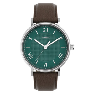 Timex model TW2V91500 to doskonały przykład męskiego zegarka, który łączy w sobie zarówno klasyczny wygląd, jak i nowoczesne akcenty modowe. Wykonany z mosiądzu z elegancko zaprojektowaną okrągłą kopertą o średnicy 41mm, ten zegarek demonstruje wysoką jakość wykonania. W połączeniu z ciemną tarczą i trzema kolorami: brązowym, srebrnym oraz zielonym, nadaje mu wyrazistości, która przyciąga uwagę. Skórzany pasek nie tylko zwiększa estetyczny urok, ale także gwarantuje komfort noszenia. Dzięki niemu model ten wpisuje się idealnie w modny styl Fashion, będąc zarówno wyrafinowanym jak i funkcjonalnym elementem męskiej garderoby. Szkło mineralne zapewnia odporność na zarysowania, co razem z wodoodpornością do 30 metrów czyni go odpowiednim zarówno na codzienne wyzwania, jak i ocasjonalne wydarzenia.