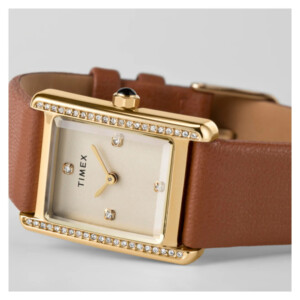 Zegarek Timex model TW2W63900 to wyraźny przykład klasyki połączonej z nowoczesnością, który zachwyca swoim unikatowym designem i dbałością o detale. Kremowa tarcza w połączeniu z eleganckim, brązowym paskiem skórzanym oraz zdobieniami z cyrkonii podkreśla wyrafinowany gust i indywidualność użytkownika. Prostokątna koperta o złotym kolorze dodaje luksusowego charakteru, a niewielki rozmiar koperty (24mm) czyni zegarek delikatnym, ale wyraźnym akcentem na nadgarstku. Wodoszczelność do 50m oraz mineralne szkło gwarantujące odporność na zarysowania to praktyczne walory, które w połączeniu z dwuletnią gwarancją podkreślają solidność i niezawodność marki Timex.