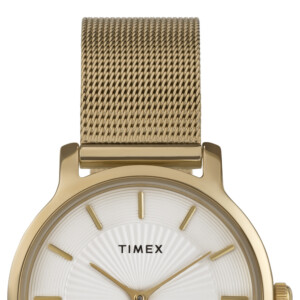Timex model TW2Y10300 jest kwintesencją elegancji wyrażoną w zegarmistrzowskiej formie. Jego okrągła koperta o średnicy 34mm i grubości zaledwie 7mm, wykonana z żółtej stali szlachetnej, harmonijnie komponuje się z jednolitym, żółtym paskiem wykonanym z tego samego materiału, nadając całości spójny i nowoczesny wygląd. Biała tarcza zegarka stanowi idealne tło dla wyrazistych wskazówek i indeksów, które są łatwo czytelne, dodając elegancji każdemu strojowi. Dopełnieniem całości jest szkło mineralne, które zabezpiecza zegarek przed zarysowaniami. Ten model od Timex idealnie sprawdzi się jako dyskretny, ale niepozbawiony charakteru dodatek do wyrafinowanej garderoby.