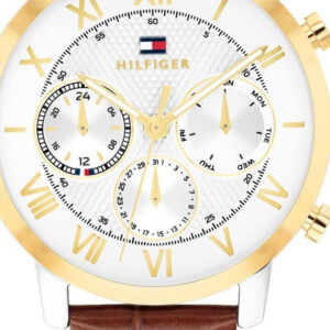 Zegarek Tommy Hilfiger o numerze modelu 1710726 wyraża klasyczny amerykański styl marki, łącząc funkcjonalność z eleganckim designem. Biała tarcza w połączeniu z okrągłą, żółtą kopertą o średnicy 42mm przyciąga uwagę, zapewniając jednocześnie łatwość odczytu. Skórzany pasek dodaje klasy i wygody, co czyni ten zegarek idealnym zarówno do codziennego użytku, jak i na specjalne okazje. Uzupełnieniem całego zestawu jest mineralne szkło, które chroni przed zarysowaniami. Styl Tommy Hilfiger odzwierciedla współczesną elegancję z nutą prestiżu.