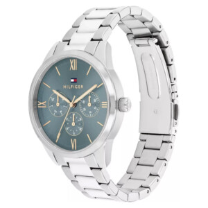 Nowoczesny zegarek Tommy Hilfiger model 1782745 to kwintesencja elegancji połączona ze stylem fashion, charakterystycznym dla marki. Okrągła, stalowa koperta w srebrnym kolorze o średnicy 38mm i grubości 9mm tworzy harmonijną całość z niebieską tarczą, która dodaje klasy każdej stylizacji. Bransoleta w tym samym kolorze co koperta, wykonana ze stali szlachetnej, jest nie tylko trwała, ale i komfortowa dzięki zapięciu motylkowemu. Minimalistyczny design i jednocześnie rozpoznawalny charakter wyróżniają ten model jako doskonały wybór dla każdego, kto ceni sobie modny wygląd oraz renomę marki Tommy Hilfiger.