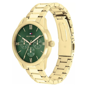Techniczne aspekty zegarka Tommy Hilfiger model 1782746 podkreślają jego funkcjonalność i niezawodność. Mechanizm kwarcowy zasilany baterią gwarantuje precyzyjne odmierzanie czasu, co jest nieodzowne w codziennym życiu. Zielona tarcza dodaje elegancji, podczas gdy żółta bransoleta wykonana ze stali szlachetnej podkreśla wytrzymałość i styl. Wodoodporność do 30 metrów zapewnia, że przypadkowe zachlapania nie wpłyną na działanie zegarka. Praktyczne zapięcie motylkowe ułatwia szybkie zakładanie i zdejmowanie. Dzięki tym cechom, zegarek model 1782746 jest doskonałym wyborem dla osób szukających zegarka, który jest zarówno praktyczny, jak i stylowy. Kupując u autoryzowanego sprzedawcy marki Tommy Hilfiger, masz pewność oryginalności i jakości.