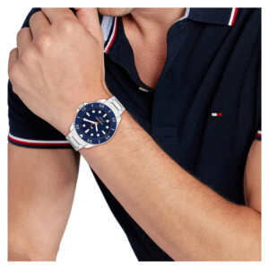 Zegarek Tommy Hilfiger model 1792202 to elegancki dodatek łączący w sobie współczesny design oraz klasyczną wartość renomowanej marki. Wykonana ze stali szlachetnej okrągła koperta o srebrnym kolorze i grubości 9mm zapewnia trwałość i styl, natomiast niebieska tarcza z kwarcowym mechanizmem zdobi nadgarstek z nieprzemijającym szykiem. Bransoleta oraz estetyczne zapięcie motylkowe dodają całokształtowi doskonałości sprawiając, że zegarek jest eleganckim wyborem na każdą okazję. Mineralne szkło o wysokiej odporności na zarysowania oraz zapewniający szczelność zakręcany dekiel podkreślają dbałość o detale, które są synonimem marki Tommy Hilfiger.