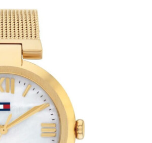 Zegarek damski Tommy Hilfiger model 1782634 to kwintesencja elegancji połączona z nowoczesnym stylem, który charakteryzuje markę. Okrągła koperta o średnicy 34 mm, wykonana z najwyższej jakości pozłacanej stali szlachetnej w kolorze żółtego złota, uwydatnia luksusowy charakter tego akcesorium. Biała, jasna tarcza ozdobiona masą perłową zdobywa serca swoją subtelnością i kobiecością. Bransoleta o tej samej barwie zwiększa przepych, podkreślając modny i trendowy charakter zegarka. Dopełnieniem całości jest wytrzymałe szkło mineralne oraz wodoodporność do 30m, co gwarantuje nie tylko styl, ale także funkcjonalność i trwałość.