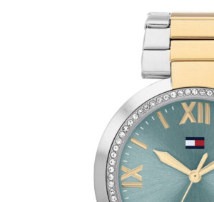 Elegancki i pełen szyku zegarek damski Tommy Hilfiger model 1782680 jest kwintesencją stylu Fashion, który odzwierciedla współczesne trendy i prestiż marki. Jego okrągła koperta o średnicy 34mm, wykonana z najwyższej jakości stali szlachetnej, elegancko połączona z dwukolorową bransoletą w odcieniach srebra i żółtego złota, podkreśla modny charakter zegarka. Tarcza w ciemnym kolorze zdobiona cyrkoniami dodaje blasku, a pozłacane elementy w technologii PVD/IP dodatkowo wzbogacją jego luksusowy wygląd. Mineralne szkło chroniące tarczę gwarantuje trwałość i odporność na zarysowania, podkreślając estetyczny i funkcjonalny charakter tego czasomierza.
