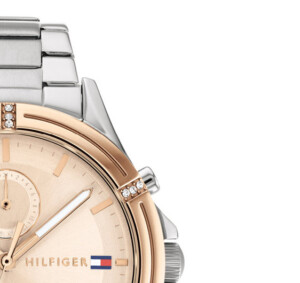 Zastosowanie w zegarku damskim Tommy Hilfiger model 1782503 precyzyjnego mechanizmu kwarcowego zasilanego baterią gwarantuje niezawodność i dokładność. Dzięki solidnej budowie i wodoodporności do 30 metrów, ten zegarek jest odporny na codzienne zachlapania, co czyni go idealnym towarzyszem każdej kobiety, niezależnie od okoliczności. Dwuletnia gwarancja oferowana przez autoryzowanego sprzedawcę dodatkowo potwierdza zaufanie do jakości wykonania Tommy Hilfiger. Wykonany z trwałej stali szlachetnej i oszałamiająco prezentujący się w kolorach różowego złota i srebra, ten elegancki zegarek stanowi bezcenny dodatek do każdej garderoby, celebrując zarówno codzienny komfort, jak i luksus na specjalne okazje.