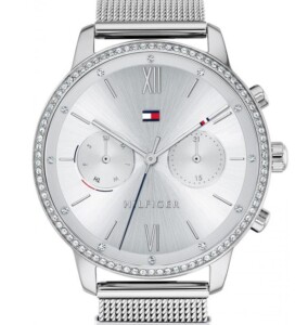 Tommy Hilfiger Blake 1782301 - zegarek damski w nowoczesnym wydaniu. Posiada okrągłą kopertę oblaną ze stali szlachetnej. Posiada dużą srebrną tarczę analogową. Uwagę przykuwają piękne kryształowe zdobienia. Powierzchnia czasomierza chroniona jest szkiełkiem mineralnym. Czasomierz napędzany jest przez mechanizm kwarcowy. Zegarek jest odporny na zachlapanie i deszcz. Posiada bransoletę stalową, która dobrze dopasowuje się do nadgarstka. Srebrna kolorystyka sprawia, że czasomierz sprawdzi się wiele outfitów bez względu na sezon.