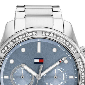 Zegarek damski Tommy Hilfiger, model 1782569, to wyraz elegancji i nowoczesnej mody, które doskonale odzwierciedlają ducha marki. Okrągła koperta o średnicy 41 mm, wykonana ze stali szlachetnej, podkreśla jego trwałość i klasę. Jasna tarcza zdobiona cyrkoniami w połączeniu z srebrnymi i niebieskimi elementami bransolety tworzy harmonijną całość, idealnie wpisującą się w modowy styl Fashion. Mineralne szkło dodaje zegarkowi odporności na zarysowania, co podkreśla jego użytkową wartość. Tommy Hilfiger z tym modelem 1782569 potwierdza swoje zaangażowanie w kreowanie akcesoriów, które są nie tylko praktyczne, ale i estetycznie zjawiskowe.