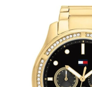 Zegarek damski Tommy Hilfiger, model 1782570, łączy w sobie luksus i współczesny styl. Wytworna bransoleta w kolorze czarnym i żółtym złocie, pokryta metodą PVD/IP, podkreśla elegancję i wyrafinowanie. Okrągła koperta o średnicy 41 mm, wykonana ze stali szlachetnej, ozdobiona kryształami, nadaje zegarkowi charakterystyczny blask, a ciemna tarcza z fluorescencyjnymi wskazówkami stanowi wyraźny i czytelny element. Styl Fashion marki Tommy Hilfiger zobowiązuje do najwyższej jakości wykonania, co czyni ten model nie tylko modnym, ale także trwałym dodatkiem.