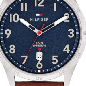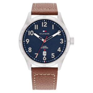 Zegarek męski Tommy Hilfiger model 1710559 emanuje luksusem i nowoczesnością, będąc doskonałym wyrazem stylu "Fashion", którym słynie marka Tommy Hilfiger. Jego koperta o średnicy 43mm, wykonana ze stali szlachetnej, podkreśla elegancję, zaś zastosowanie ciemnej tarczy w połączeniu z brązowym, skórzanym paskiem dodaje wyrafinowania. Kontrastujące niebieskie i srebrne akcenty na tarczy zegarka przyciągają wzrok, a jednocześnie zachowują klasyczną harmonię. Wizualnie zegarek jest nie tylko zjawiskowy, ale także odzwierciedla trwałość i wysoką jakość, które są znakiem rozpoznawczym produktów Tommy Hilfiger.