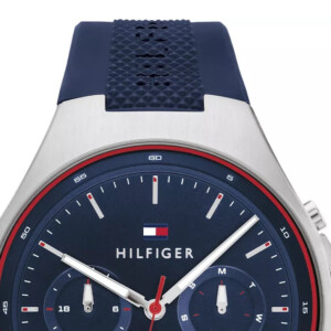 Zegarek męski Tommy Hilfiger, model 1792057, to kwintesencja elegancji połączona z nowoczesnym stylem Fashion, charakterystycznym dla marki. Design urządzenia olśniewa połączeniem kolorów - niebieskiego i srebrnego, które dodają zegarkowi wyrazistości. Okrągła koperta o średnicy 44mm, wykonana z nierdzewnej stali, gwarantuje trwałość i odporność na codzienne użytkowanie. Ciemna tarcza z fluoerescencyjnymi wskazówkami i indeksami zachowuje czytelność nawet w słabym oświetleniu. Gumowy pasek zapewnia komfort noszenia oraz nadaje zegarkowi sportowego charakteru. Mineralne szkło chroni przed zarysowaniami, a wodoodporność do 50 metrów umożliwia korzystanie z zegarka nawet podczas pływania powierzchniowego.