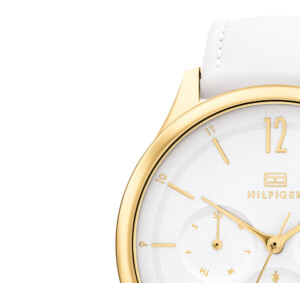 Tommy Hilfiger LAYLA 1782454 - zegarek damski na miękkim i wygodnym pasku skórzanym świetnie prezentuje się na nadgarstku. Zegarek o klasie wodoodporności do 30m , oznacza odporność na niewielki kontakt z wodą. Powłoka koloru naniesiona został techniką jonizacji, przez kolor wykazuje odporność na zniszczenia przez wiele lat. Wyrób dodatkowo wyposażony został w rozbudowany datownik. Przedstawiony czasomierz to idealna propozycja dla kobiet, które stawiają na modne i solidne dodatki ubioru. Produkt objęty został 2-letnim okresem gwarancji. Czasomierz zapakowany został w oryginalne pudełko producenta.