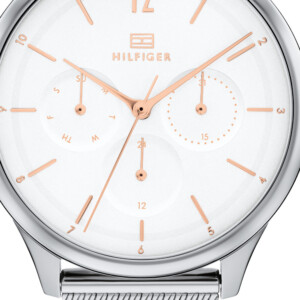 Tommy Hilfiger LAYLA 1782456 - zegarek damski wykonany został z wysokiej jakości stali szlachetnej, która nie rdzewieje ani nie zmienia koloru. Czasomierz jest odporny na zachlapanie. Zegarek posiada okrągła tarczę analogową, która pokryta została szkiełkiem mineralnym. Urządzenie posiada dodatkowo funkcje rozbudowanego datownik, który umieszczony jest w formie subtarczy. Za perfekcyjne działanie zegarka odpowiada mechanizm kwarcowy, który napędzany jest przez baterię kwarcową.