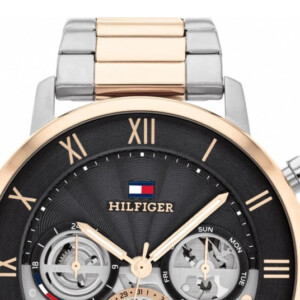 Zegarek męski Tommy Hilfiger model 1710570 to kwintesencja elegancji i nowoczesności w świecie mody. Kombinacja czarnej tarczy z elementami w kolorach różowego złota i srebra tworzy niepowtarzalną, stylową kompozycję, która doskonale oddaje charakter marki Tommy Hilfiger, znanego z wysokiej jakości i prestiżu. Okrągła koperta o średnicy 44mm wykonana ze stali szlachetnej oraz odporna na zarysowania szybka mineralna podkreślają trwałość i luksusowy charakter tego zegarka. Stylowy i funkcjonalny, ten model jest idealny dla mężczyzn ceniących modę oraz jakość, które są symbolem marki Hilfiger.
