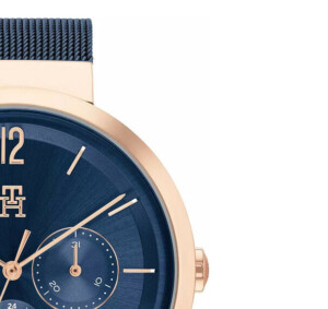Zegarek damski Tommy Hilfiger model 1782541 to nie tylko urządzenie do mierzenia czasu, ale także wyrafinowany dodatek modowy. Charakteryzujący się okrągłą kopertą o średnicy 40mm, wykonany jest z pozłacanej na kolor różowego złota stali szlachetnej, co nadaje mu elegancki i luksusowy wygląd. Ciemna tarcza w połączeniu z niebieskim i różowym złotem podkreśla styl Fashion tej marki, znanej z klasyki połączonej z nowoczesnymi trendami. Okrągły kształt i bransoletka dodają zegarkowi klasycznego, ale zarazem modnego charakteru, uosabiając wartości estetyczne, które są synonimem marki Tommy Hilfiger.