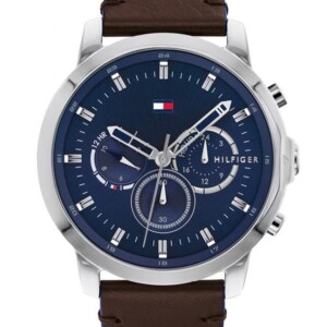 Zegarek męski Tommy Hilfiger Mason 1791797 wykonany został w wysokiej jakości stali szlachetnej 316 l. Jest ona antyalergiczna, nie wywołuje reakcji alergicznych. Najbardziej popularny kształt koperty w zegarkach naręcznych – okrągła koperta o średnicy 46 mm. Ma zamontowany mechanizm kwarcowy, który wykorzystuje do pracy baterie. Ciemna tarcza, analogowa jest pokryta szkłem mineralnym odpornym na różnego rodzaju zniszczenia. Na teleskopach koperty zamontowany został skórzany pasek.
