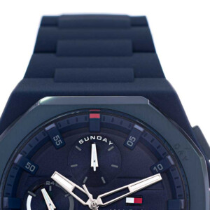 Zegarek męski Tommy Hilfiger model 1792122 łączy w sobie elegancję i nowoczesność, co odzwierciedla prestiż i modowy styl marki. Jego okrągła koperta wykonana ze stali szlachetnej, o średnicy 44mm, malowana w głębokim odcieniu niebieskim, podkreśla dynamiczny charakter użytkownika. Matowe wykończenie ciemnej tarczy kontrastuje z błyskawicznym połyskiem mineralnego szkła, co dodaje zegarkowi męskiego charakteru. Gumowy, elastyczny pasek zapewnia wygodę oraz trwałość, a dodatkowy datownik na tarczy zwiększa funkcjonalność tego modnego akcesorium. Wodoszczelność do 50m czyni go idealnym wyborem dla aktywnych mężczyzn. Styl ‘Fashion’ zegarka Tommy Hilfiger jest wyraźnym sygnałem dla tych, którzy cenią zarówno praktyczność, jak i trendsetterstwo.