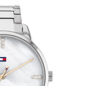 Elegancki zegarek damski Tommy Hilfiger model 1782544 to kwintesencja stylu Fashion, który idealnie wpisuje się w nowoczesne tendencje mody. Jego okrągła koperta o średnicy 36 mm, wykonana z wysokiej jakości stali szlachetnej, nadaje zegarkowi ponadczasową elegancję. Srebrny kolor i błyszcząca, jasna tarcza podkreślają subtelną luksusowość, która jest charakterystyczna dla marki Tommy Hilfiger. Mineralne szkło zapewnia wytrzymałość i odporność na zarysowania, a modne wykonanie bransolety dodaje całemu zegarkowi wyjątkowego charakteru.