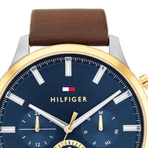 Zegarek męski marki Tommy Hilfiger, model 1710496, wyróżnia się nie tylko prestiżem znanego brandu, ale także jego charakterystycznym stylem Fashion. Połączenie eleganckiej ciemnej tarczy z ekskluzywnym paskiem skórzanym w kolorze brązowym i detalami w kolorach niebieskim oraz żółtego złota, tworzy harmonijną całość, która podkreśla wyszukaną estetykę produktu. Okrągła koperta o średnicy 44mm wykonana ze stali szlachetnej oraz mineralne szkło dodają zegarkowi nowoczesności i trwałości, idealnie komponując się z klasycznym podejściem marki do mody.