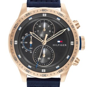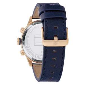 Zegarek męski Tommy Hilfiger model 1791808 to kwintesencja stylu Fashion, łączący elegancję z nowoczesnym designem. Wykonany ze stali szlachetnej koperta o średnicy 46mm i okrągłym kształcie, pokryta jest techniką PVD/IP w kolorze różowego złota, co dodaje prestiżu i unikalności. Niebieski pasek skórzany harmonijnie kontrastuje z ciemną tarczą, podkreślającą męski charakter zegarka. Zastosowanie fluorescencyjnych wskazówek oraz szkła mineralnego, znakomicie komponuje się z całokształtem i podkreśla wartość marki Tommy Hilfiger jako symbolu luksusu i jakości.
