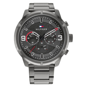 Męski zegarek Tommy Hilfiger model 1792071 to doskonały przykład elegancji i nowoczesności, która łączy w sobie charakterystyczny dla marki styl Fashion. Wykonany ze stali szlachetnej z szarym wykończeniem PVD/IP w połączeniu z ciemną tarczą, ten zegarek jest definicją męskiego stylu. Solidna, okrągła koperta o średnicy 50mm, wyraźny i łatwo czytelny datownik, a także bransoleta dodają mu wyrafinowanego charakteru. Mineralne szkło zapewnia odporność na zarysowania, a klasa wodoodporności do 50m umożliwia użytkowanie podczas pływania powierzchniowego. Ten model reprezentuje modowe dziedzictwo Tommy Hilfiger, dzięki czemu każdy mężczyzna może podkreślić swój indywidualny styl.