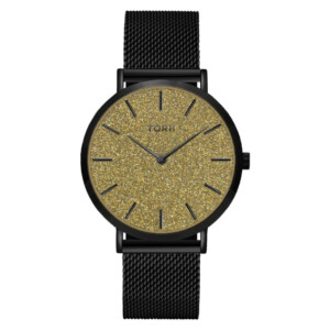 Elegancki damski zegarek Torii, model B38BM.1G, to idealne odzwierciedlenie modnego stylu i prestiżowej marki. Jego runda koperta o średnicy 38 mm, wykonana ze stali szlachetnej, oraz ekskluzywna bransoleta w kolorze czarnym z żółtym złotem, podkreślają unikatowy charakter tego akcesorium. Dzięki technologii nanoszenia koloru PVD/IP, zegarek zachowuje swój blask na długo. Ciemna tarcza zegarka, osłonięta szkłem mineralnym z powłoką szafirową, dodaje elegancji, a sam zegarek z powodzeniem może towarzyszyć swojej właścicielce zarówno w codziennych, jak i wyjątkowych momentach.